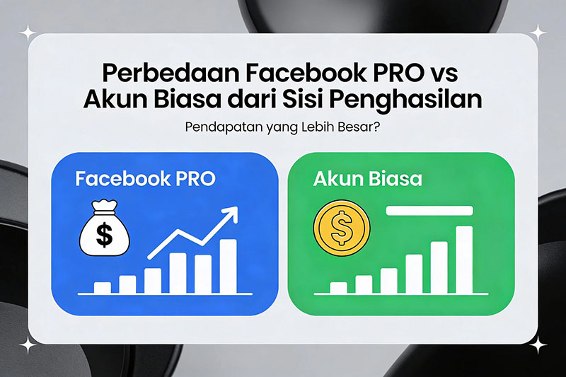Perbedaan Facebook PRO vs akun biasa dari sisi penghasilan sangat signifikan. Facebook PRO dirancang sebagai mesin penghasil uang, sementara akun biasa hanya sebagai media sosial personal.
